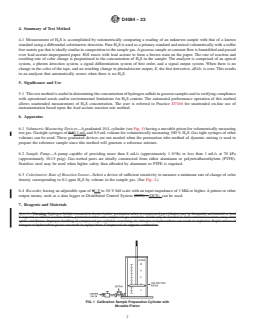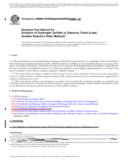 SIGNIFICANCE AND USE 5.1 This test method is useful in determining the concentration of hydrogen sulfide in gaseous samples and in verifying compliance with operational needs and/or environmental limitations for H2S content. The automated performance operation of this method allows unattended measurement of H2S concentration. The user is referred to Practice D7166 for unattended on-line use of instrumentation based upon the lead acetate reaction rate method. SCOPE 1.1 This test method covers the determination of hydrogen sulfide (H2S) in gaseous fuels. It is applicable to the measurement of H2S in natural gas, liquefied petroleum gas (LPG), substitute natural gas, landfill gas, sewage treatment off gasses, recycle gas, flare gasses, and mixtures of fuel gases. This method can also be used to measure the hydrogen sulfide concentration in carbon dioxide. Air does not interfere. The applicable range is 0.1 to 16 parts per million by volume (ppm/v) (approximately 0.1 to 22 mg/m3) and may be extended to 100 % H2S by manual or automatic volumetric dilution. 1.2 This standard does not purport to address all of the safety concerns, if any, associated with its use. It is the responsibility of the user of this standard to establish appropriate safety, health, and environmental practices and determine the applicability of regulatory limitations prior to use. 1.3 This international standard was developed in accordance with internationally recognized principles on standardization established in the Decision on Principles for the Development of International Standards, Guides and Recommendations issued by the World Trade Organization Technical Barriers to Trade (TBT) Committee.