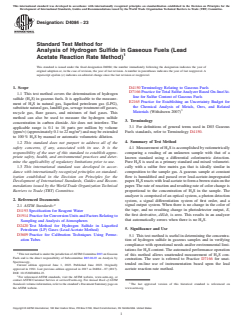 ASTM D4084-23, titled Standard Test Method for Analysis of Hydrogen Sulfide in Gaseous Fuels (Lead Acetate Reaction Rate Method), establishes procedures for the determination of hydrogen sulfide (H₂S) concentrations in gaseous fuels. Issued by ASTM International, this standard is vital for gas industry stakeholders, regulatory bodies, and analytical laboratories tasked with ensuring operational safety and environmental compliance.