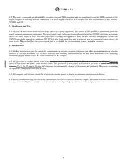REDLINE ASTM D7485-23 - Standard Test Method for Determination of Nonylphenol, <emph type="bdit">p-tert</emph >-Octylphenol, Nonylphenol Monoethoxylate and Nonylphenol Diethoxylate in Environmental Waters by Liquid Chromatography/Tandem Mass Spectrometry