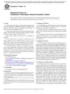 Keywords: ASTM D3609-22, permeation tubes, gas calibration, air pollutant measurement, analytical instrument calibration, sulfur dioxide calibration, nitrogen dioxide calibration, environmental monitoring, industrial hygiene, calibration standards.