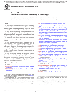 ASTM E1647-16(2022) - Standard Practice for Determining Contrast Sensitivity in Radiology establishes procedures and criteria for assessing the contrast sensitivity of radiographic imaging systems using a dedicated contrast sensitivity gauge. This gauge is designed to measure the smallest change in material thickness or density that can be discerned in an image, evaluated independently of the system's spatial resolution or unsharpness.