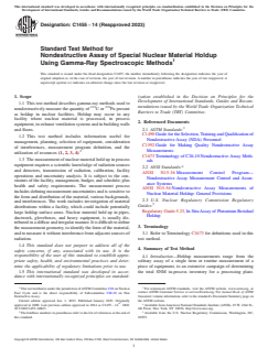 Keywords: ASTM C1455-14(2023), gamma-ray spectroscopic methods, nondestructive assay, special nuclear material holdup, uranium holdup, plutonium holdup, nuclear facility, SNM inventory control, nuclear safeguards, criticality safety, decontamination and decommissioning, NDA standards, radiological safety, process equipment assay.