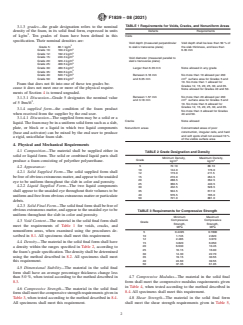 1.6 This specification provides mechanical properties of five different grades of foam in the solid final form. A foam that does not meet the specified mechanical properties shall be identified as an ungraded foam.