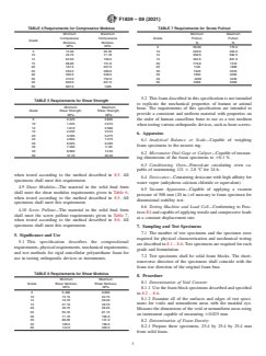 ABSTRACT This specification covers rigid polyurethane foam blocks or sheets recommended for use as a standard material for mechanical testing using orthopedic devices and instruments. Although the physical properties of the foam are in the order of those reported for human cancellous bones, these materials are not intended for implantation into the human body. All materials should conform to the specified quality of appearance, dimensional stability, and composition, and values of void content, compressive strength, compressive modulus, shear strength, shear modulus, and screw pullout. SIGNIFICANCE AND USE 5.1 This specification describes the compositional requirements, physical requirements, mechanical requirements, and test methods for rigid unicellular polyurethane foam for use in testing orthopaedic devices or instruments. 5.2 This foam described in this specification is not intended to replicate the mechanical properties of human or animal bone. The requirements of this specification are intended to provide a consistent and uniform material with properties on the order of human cancellous bone to use as a test medium when testing various orthopaedic devices, such as bone screws. SCOPE 1.1 This specification covers rigid unicellular polyurethane foam for use as a standard material for performing mechanical tests utilizing orthopaedic devices or instruments. The specification is applicable to sheets or blocks of foam, or foam that is made by the user using a two-part liquid mixture. 1.2 This specification covers polyurethane foam material that is used in the laboratory for mechanical testing, as described in 1.1. These materials are not intended for implantation into the human body. 1.3 The foam described herein possesses mechanical properties which are on the order of those reported for human cancellous bone. See Appendix X1, Rationale, for further information regarding the appropriateness of using the specified foam as a model for human cancellous bone. 1.4 This specification covers compositional requirements, physical requirements, mechanical requirements, and test methods for rigid polyurethane foam in the solid final form. 1.5 This specification provides qualification criteria for vendor or end user processes and acceptance criteria for individual material lots. 1.6 This specification provides mechanical properties of five different grades of foam in the solid final form. A foam that does not meet the specified mechanical properties shall be identified as an ungraded foam. 1.7 The values stated in SI units are to be regarded as standard. No other units of measurement are included in this standard. 1.8 The following precautionary statement pertains to the test method portion only, Section 8, of this specification: This standard does not purport to address all of the safety concerns, if any, associated with its use. It is the responsibility of the user of this standard to establish appropriate safety, health, and environmental practices and determine the applicability of regulatory limitations prior to use. 1.9 This international standard was developed in accordance with internationally recognized principles on standardization established in the Decision on Principles for the Development of International Standards, Guides and Recommendations issued by the World Trade Organization Technical Barriers to Trade (TBT) Committee.