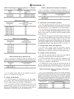 TABLE 7 Initial Settings for Determining Stress at 1 % Extension TABLE 11 Mandrel Size for Adherence Test [Metric]