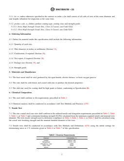 7.1 The zinc-coated steel core wire shall conform to the ordered tensile and elongation requirements prescribed in Table 2, Table