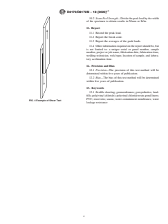 - Destructive Testing Methods: The standard specifies destructive seam tests to determine seam integrity for seams produced by adhesive and chemical fusion (excluding thermal fusion).