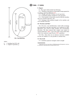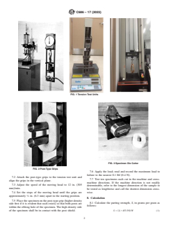 The standard outlines how specimens should be cut from the full thickness of the product using a die, ensuring uniformity for testing. Damaged or delaminated samples are excluded.Test Apparatus and Procedure
