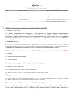 SIGNIFICANCE AND USE 5.1 Some oils are formulated with metal-containing additives that act as detergents, antioxidants, antiwear agents, etc. Some of these additives contain one or more of these metals: barium, calcium, zinc, and magnesium. This test method provides a means of determining the concentration of these metals that gives an indication of the additive content in these oils. 5.2 Several additive metals and their compounds are added to the lubricating oils to give beneficial performance. (See Table 1.) SCOPE 1.1 This test method is applicable for the determination of mass percent barium from 0.005 % to 1.0 %, calcium and magnesium from 0.002 % to 0.3 %, and zinc from 0.002 % to 0.2 % in lubricating oils. 1.2 Higher concentrations can be determined by appropriate dilution. Lower concentrations of metals such as barium, calcium, magnesium, and zinc at about 10 ppm level can also be determined by this test method. Use of this test method for the determination at these lower concentrations should be by agreement between the buyer and the seller. 1.3 Lubricating oils that contain viscosity index improvers may give low results when calibrations are performed using standards that do not contain viscosity index improvers. 1.4 The values stated in SI units are to be regarded as standard. No other units of measurement are included in this standard. 1.5 This standard does not purport to address all of the safety concerns, if any, associated with its use. It is the responsibility of the user of this standard to establish appropriate safety, health, and environmental practices and determine the applicability of regulatory limitations prior to use. Specific warning statements are given in 4.1, 7.3, and 9.1. 1.6 This international standard was developed in accordance with internationally recognized principles on standardization established in the Decision on Principles for the Development of International Standards, Guides and Recommendations issued by the World Trade Organization Technical Barriers to Trade (TBT) Committee.