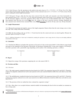 - Reporting and Precision: Results detail the average expansion to the nearest 0.001%. The standard includes guidelines for test specimen numbers, permissible result ranges, and precision/bias of results.