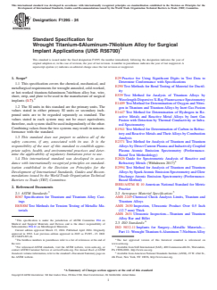 ASTM F1295-24 is a technical specification published by ASTM International. Its full title is "Standard Specification for Wrought Titanium-6Aluminum-7Niobium Alloy for Surgical Implant Applications (UNS R56700)". This standard covers: ABSTRACT This specification covers the chemical, mechanical, and metallurgical requirements for wrought annealed, cold worked, or hot rolled titanium-6aluminum-7niobium alloy (UNS R56700) bar and wire to be used in the manufacture of surgical implants. Titanium mill products covered in this specification shall be formed with the conventional forging and rolling equipment found in primary ferrous and nonferrous plants, and may be furnished as descaled or pickled, sandblasted, chemically milled, ground, machined, peeled, polished, or cold drawn. The alloy shall be multiple melted in arc furnaces (including furnaces such as plasma arc and electron beam) of a type conventionally used for reactive metals. Heat analysis shall conform to the chemical composition requirements prescribed for aluminum, niobium, tantalum, iron, oxygen, carbon, nitrogen, hydrogen, and titanium. The material shall conform to the specified requirements for mechanical properties such as ultimate tensile strength, yield strength, and elongation. A minimum of two tension tests from each lot shall be performed. Special requirements for the microstructure are detailed as well. SCOPE 1.1 This specification covers the chemical, mechanical, and metallurgical requirements for wrought annealed, cold-worked, or hot-worked titanium-6aluminum-7niobium alloy bar, wire, sheet, strip, and plate to be used in the manufacture of surgical implants (1-7).2 1.2 The SI units in this standard are the primary units. The values stated in either primary SI units or secondary inch-pound units are to be regarded separately as standard. The values stated in each system may not be exact equivalents; therefore, each system shall be used independently of the other. Combining values from the two systems may result in nonconformance with the standard. 1.3 This standard does not purport to address all of the safety concerns, if any, associated with its use. It is the responsibility of the user of this standard to establish appropriate safety, health, and environmental practices and determine the applicability of regulatory limitations prior to use. 1.4 This international standard was developed in accordance with internationally recognized principles on standardization established in the Decision on Principles for the Development of International Standards, Guides and Recommendations issued by the World Trade Organization Technical Barriers to Trade (TBT) Committee.
