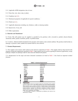 7.1.1 Requirements for the major and minor elemental constituents are listed in Table 1. Also listed are important residual