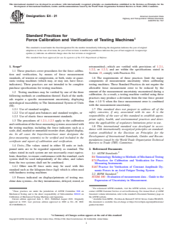 • The practices cover calibration and verification of both static and quasi-static testing machines, including those with no direct force indicators.