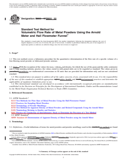 REDLINE ASTM B855-22 - Standard Test Method for Volumetric Flow Rate of Metal Powders Using the Arnold Meter and Hall Flowmeter Funnel