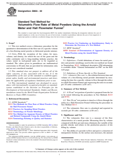 ASTM B855-22 - Standard Test Method for Volumetric Flow Rate of Metal Powders Using the Arnold Meter and Hall Flowmeter Funnel