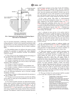 5.4 For relatively brittle materials, for which fracture propagation energy is small in comparison with the fracture initiation energy, the indicated impact energy absorbed is, for all practical purposes, the sum of factors 5.3.1 and 5.3.3. The toss correction (see 5.3.3) may represent a very large fraction of the total energy absorbed when testing relatively dense and brittle materials. Test Method C shall be used for materials that have an Izod impact resistance of less than 27 J/m (0.5 ft·lbf/in.). (See Appendix X4 for optional units.) T...
