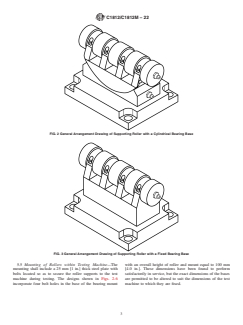 4.2 Two types of rollers are used to support a beam. One includes a cylindrical bearing that allows the roller assembly to rotate along an axis parallel to the longitudinal axis of the beam and thereby accommodate any warping introduced during specimen fabrication. The other roller does not include the cylindrical bearing.