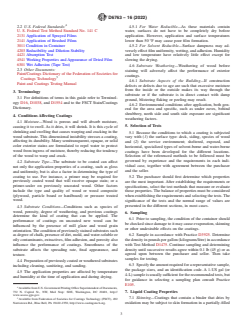 ABSTRACT This guide covers the selection and use of procedures for testing exterior wood stains. This includes both water borne and solvent borne semitransparent and opaque stains. The different conditions that affect coatings are presented in details. The balance of properties must be considered when establishing the requirements and selecting the tests. The different test methods in determining the liquid coating properties are enumerated and discussed. The different methods in determining the coating application and film formation are presented and discussed in details. The different test methods of determining the appearance of dry films are presented. The different test method of determining the dry coating properties are presented in details. The different test methods and practices in performing the chemical analysis of exterior woods are presented in details. Although many of the recommended test methods attempt to simulate conditions under which coatings are applied and used, it is not possible to duplicate accurately all possible conditions. Testing materials, including appropriate controls, under field conditions is recommended for the final evaluation of suitability. SCOPE 1.1 This guide covers the selection and use of procedures for testing exterior wood stains and clear water repellents. This includes both water borne and solvent borne semitransparent and opaque stains and clear water repellents. The properties that can be examined or, in some cases, the relevant test procedures are listed in 2.1 and 2.2. Note 1: The term “opaque stain” is defined as a pigmented composition intended for use on wooden surfaces to produce a uniform finish that obscures the grain and color of the wood, but not its surface texture; also called solid color or solid hide. Note 2: The term “semitransparent” is defined as a pigmented composition intended for use on wooden surfaces to produce a uniform finish that does not fully obscure the grain or the texture of the wood. Note 3: The term “clear” is defined as a transparent composition intended for use on wooden surfaces to produce a uniform finish that does not obscure the grain or texture of the wood. 1.1.1 Discussion—When applied to woods that differ in color, there is a color difference between stained substrates. 1.2 The values stated in inch-pound units are to be regarded as standard. The values given in parentheses are mathematical conversions to SI units that are provided for information only and are not considered standard. 1.3 This standard does not purport to address all of the safety concerns, if any, associated with its use. It is the responsibility of the user of this standard to establish appropriate safety, health, and environmental practices and determine the applicability of regulatory limitations prior to use. 1.4 This international standard was developed in accordance with internationally recognized principles on standardization established in the Decision on Principles for the Development of International Standards, Guides and Recommendations issued by the World Trade Organization Technical Barriers to Trade (TBT) Committee.