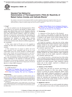ASTM D6559-22 - Standard Test Method for Determination of Thermogravimetric (TGA) Air Reactivity of Baked Carbon Anodes and Cathode Blocks