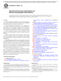 Keywords: ASTM D3562-22, drycleanable coat fabrics, performance specification, woven apparel textiles, textile standards, colorfastness, overcoat fabric durability, ASTM International, quality control in textiles, clothing flammability standards
