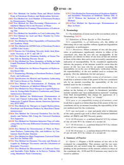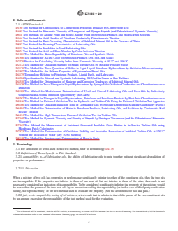 ASTM D7155-20 references a range of supporting standards for test methods and definitions relevant to turbine lubricating oil compatibility, including:
