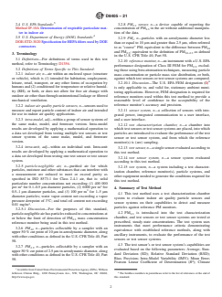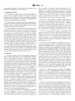 SIGNIFICANCE AND USE 5.1 Poor indoor air quality has been implicated in significant adverse acute and chronic impacts on occupant health and performance. The ability to assess the components contributing to poor indoor air quality is critical for determining best practices for improving indoor air quality. 5.2 Measurement of pollutants in indoor environments using sensors and sensor systems provides information needed to improve indoor air quality through pollutant source control, ventilation, filtration or other treatments. 5.3 This method uses a test characterization chamber system equipped with reference monitor(s) to evaluate the response of test sensors or test sensor systems to specific types of particles (for example, salt, polystyrene latex, or dust). To facilitate reproducible results, the test particles used within this method are standardized and have known properties. The user is cautioned that a single particle type is not representative of all particles found indoors. The relative response of test sensors or test sensor systems to a reference monitor can vary by a factor of two for different particle types (for example, primary or secondary, organic or inorganic, outdoor or indoor origin; see 6.11.3 for further discussion). Furthermore, the user is cautioned that the lower limit of particle size detection for optical test sensors and test sensor systems is generally 0.3 μm in diameter; particles below this size are generally undetected and may represent a significant health concern as well. SCOPE 1.1 This test method uses a chamber system to evaluate the performance of stationary PM2.5 sensors (sensors) and particle sensor systems (sensor systems) subjected to various test conditions, including temperature, relative humidity, PM2.5 concentration, and coarse PM interferent concentration. 1.1.1 This test method covers sensors and sensor systems that can be continuously powered and continuously operated for the duration of any test described in this method through line power or an internal battery of sufficient output. This test method is not meant to evaluate sensors or sensor systems without these capabilities. 1.1.2 This test method evaluates the performance of sensors and sensor systems that allow users to collect data in a systemic manner to assess the capabilities and limitations of these devices. 1.1.3 This test method is not meant to evaluate sensors or sensor systems without data storage and recording capabilities. 1.1.4 This test method is not intended to evaluate indoor air quality sensors and sensor systems for purposes of regulation of outdoor air, homeland security, law enforcement or forensic activity. 1.2 The values stated in SI units are to be regarded as standard. The values given in parentheses after SI units are provided for information only and are not considered standard. 1.3 The text of this standard references notes and footnotes that provide explanatory material. These notes and footnotes (excluding those in tables and figures) shall not be considered as requirements of the standard. 1.4 This standard does not purport to address all of the safety concerns, if any, associated with its use. It is the responsibility of the user of this standard to establish appropriate safety, health, and environmental practices and determine the applicability of regulatory limitations prior to use. 1.5 This international standard was developed in accordance with internationally recognized principles on standardization established in the Decision on Principles for the Development of International Standards, Guides and Recommendations issued by the World Trade Organization Technical Barriers to Trade (TBT) Committee.