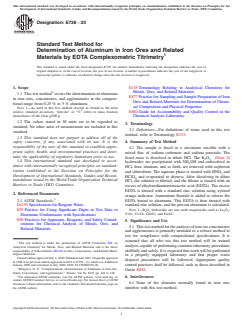 ASTM E738-20 - Standard Test Method for Determination of Aluminum in Iron Ores and Related Materials by EDTA Complexometric Titrimetry