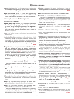 SCOPE 1.1 This terminology pertains to the conversion of solar energy into other forms of energy by various means, including thermal absorption (i.e., solar thermal) and the photovoltaic effect (i.e., photovoltaics). 1.2 This terminology also pertains to instrumentation used to measure solar radiation. 1.3 This terminology also pertains to glass for solar energy applications. 1.4 Fundamental terms associated with electromagnetic radiation that are indicates as derived units in Standard IEEE/ASTM SI 10 are not repeated in this terminology. 1.5 The values stated in SI units are to be regarded as standard. No other units of measurement are included in this standard. 1.6 This international standard was developed in accordance with internationally recognized principles on standardization established in the Decision on Principles for the Development of International Standards, Guides and Recommendations issued by the World Trade Organization Technical Barriers to Trade (TBT) Committee.