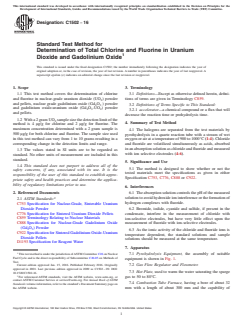 ASTM C1502-16 - Standard Test Method for Determination of Total Chlorine and Fluorine in Uranium Dioxide and Gadolinium Oxide