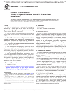 ASTM C1223-19(2023) - Standard Test Method for Testing of Glass Exudation from AZS Fusion-Cast Refractories