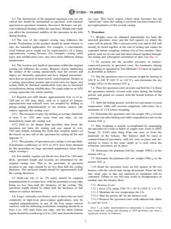 • Sampling and Specimens: Requirements are specified for removing cores or bars from refractory castings, with considerations given to casting size, sampling location, and maintaining specimen uniformity.