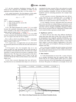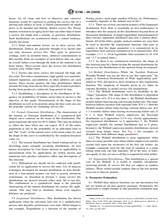 SIGNIFICANCE AND USE 4.1 Service life test data often show different distribution shapes than many other types of data. This is due to the effects of measurement error (typically normally distributed), combined with those unique effects which skew service life data towards early failure (infant mortality failures) or late failure times (aging or wear-out failures) Applications of the principles in this guide can be helpful in allowing investigators to interpret such data. Note 2: Service life or reliability data analysis packages are becoming more readily available in standard or common computer software packages. This puts data reduction and analyses more readily into the hands of a growing number of investigators. SCOPE 1.1 This guide presents briefly some generally accepted methods of statistical analyses which are useful in the interpretation of service life data. It is intended to produce a common terminology as well as developing a common methodology and quantitative expressions relating to service life estimation. 1.2 This guide does not cover detailed derivations, or special cases, but rather covers a range of approaches which have found application in service life data analyses. 1.3 Only those statistical methods that have found wide acceptance in service life data analyses have been considered in this guide. 1.4 The Weibull life distribution model is emphasized in this guide and example calculations of situations commonly encountered in analysis of service life data are covered in detail. 1.5 The choice and use of a particular life distribution model should be based primarily on how well it fits the data and whether it leads to reasonable projections when extrapolating beyond the range of data. Further justification for selecting a model should be based on theoretical considerations. 1.6 This international standard was developed in accordance with internationally recognized principles on standardization established in the Decision on Principles for the Development of International Standards, Guides and Recommendations issued by the World Trade Organization Technical Barriers to Trade (TBT) Committee.