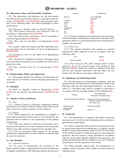 - Testing and Inspection: Requires compliance with referenced ASTM methods for chemical and mechanical property analyses. Clearly outlines the process for sampling, retesting, inspection, rejection, and rehearing, ensuring consistent product quality and recourse in the event of a dispute.