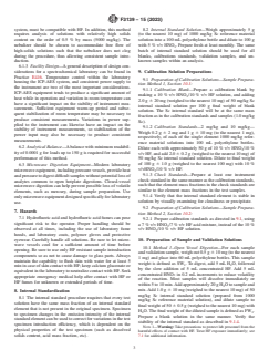 4.2 Two methods of dissolving tin-based solder alloys are given in this standard. The first method uses open-vessel hydrofluoric and nitric acid room temperature digestions; the second method employs closed-vessel nitric and hydrofluoric acid microwave digestions, both for use only with ICP-AES instruments equipped with a hydrofluoric acid resistant sample introduction system.