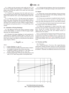 The standard prescribes length measurements at specified intervals using a length comparator, and outlines procedures for calculating drying shrinkage as a percentage of the effective gauge length.Reporting and Precision