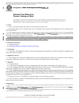 • Torsion Test Procedure: The method describes preparation, testing, and reporting steps for torsion (twist) tests on metallic wires.