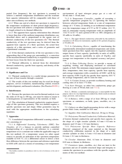 - Data Reporting and Interpretation: Covers complete material identification, apparatus description, calibration constants, specimen geometry, and reporting of thermal conductivity and diffusivity at each test temperature.