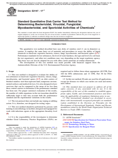 ASTM E2197-17e1 - Standard Quantitative Disk Carrier Test Method for Determining Bactericidal, Virucidal, Fungicidal, Mycobactericidal, and Sporicidal Activities of Chemicals