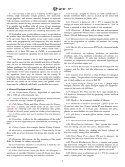 ASTM E2197-17e1 is a standard published by ASTM International. Its full title is "Standard Quantitative Disk Carrier Test Method for Determining Bactericidal, Virucidal, Fungicidal, Mycobactericidal, and Sporicidal Activities of Chemicals". This standard covers: SIGNIFICANCE AND USE 5.1 The design of this test eliminates any loss of viable organisms through wash off, thus making it possible to produce statistically valid data using many fewer test carriers than needed for methods based on simple MPN estimates. 5.2 The stringency in the test is provided by the use of a soil load, the microtopography of the brushed stainless steel carrier surface, and the smaller ratio of test substance to surface area typical for many disinfectant applications. Thus, the test substance being assessed is presented with a reasonable challenge while allowing for efficient recovery of the test organisms from the inoculated carriers. The metal disks in the basic test are also compatible with a wide variety of actives. 5.3 The design of the carriers makes it possible to place onto each a precisely measured volume of the test organism (10 μL) as well as the control fluid or test substance (50 μL). 5.4 The inoculum is placed at the center of each disk whereas the volumes of the test substance covers nearly the entire disk surface, thus virtually eliminating the risk of any organisms remaining unexposed. 5.5 In all tests, other than those against viruses, the addition of 10 mL of an eluent/diluent gives a 1:200 dilution of the test substance immediately at the end of the contact time. While this step in itself may be sufficient to arrest the microbicidal activity of most actives, the test protocol permits the addition of a specific neutralizer to the eluent/diluent, if required. Except for viruses, the membrane filtration step also allows processing of the entire eluate from the test carriers and, therefore, the capture and subsequent detection of even low numbers of viable organisms that may be present. Subsequent rinsing of the membrane filters with saline also reduces the risk of carrying any inhibitory residues over to the recovery medium. Validation of the process of neutralization of the test substance is required by challenge with low numbers of the te... SCOPE 1.1 This test method is designed to evaluate the ability of test substances to inactivate vegetative bacteria, viruses, fungi, mycobacteria, and bacterial spores (1-7) on disk carriers of brushed stainless steel that represent hard, nonporous environmental surfaces and medical devices. It is also designed to have survivors that can be compared to the mean of no less than three control carriers to determine if the performance standard has been met. For proper statistical evaluation of the results, the number of viable organisms in the test inoculum should be sufficiently high to take into account both the performance standard and the experimental variations in the results. 1.2 The test protocol does not include any wiping or rubbing action. It is, therefore, not designed for testing wipes. 1.3 This test method should be performed by persons with training in microbiology in facilities designed and equipped for work with infectious agents at the appropriate biosafety level (8). 1.4 It is the responsibility of the investigator to determine whether Good Laboratory Practice Regulations (GLPs) are required and to follow them where appropriate (40 CFR, Part 160 for EPA submissions and 21 CFR, Part 58 for FDA submissions). 1.5 In this test method, SI units are used for all applications, except for distance in which case inches are used and metric units follow. 1.6 This standard does not purport to address all of the safety concerns, if any, associated with its use. It is the responsibility of the user of this standard to establish appropriate safety, health, and environmental practices and determine the applicability of regulatory limitations prior to use. 1.7 This international standard was developed in accordance with internationally recognized principles on standardization established in the Decision on Principles for the Development of International Standards, Guides and Recommendations issued by the World T...
