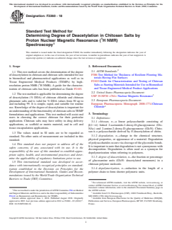 ASTM F2260-18 - Standard Test Method for Determining Degree of Deacetylation in Chitosan Salts by Proton Nuclear Magnetic Resonance (1H NMR) Spectroscopy - defines a quantitative, reproducible test method to measure the degree of deacetylation (% DDA) in chitosan chloride and chitosan glutamate salts using high-resolution proton NMR. Knowing the % DDA in chitosan salts is critical for biomedical, pharmaceutical, and tissue-engineered medical products (TEMPs), as the deacetylation level influences charge density, solubility, reactivity, and biological functionality of the polymer.