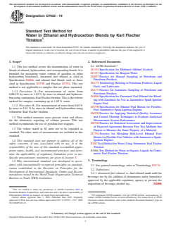 ASTM D7923-19 - Standard Test Method for Water in Ethanol and Hydrocarbon Blends by Karl Fischer Titration