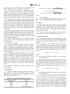 NOTE 3—The data in Table 2 shows repeatabilities and reproducibilities for water values obtained using the formulas given in 16.1.1 and 16.1.2.