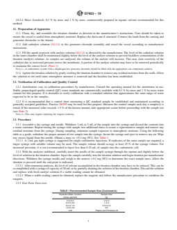 11.1 Clean, dry, and assemble the titration chamber as directed in the manufacturer’s instructions. Care should be taken to