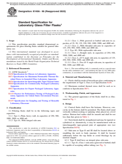 ASTM E1406-95(2022), "Standard Specification for Laboratory Glass Filter Flasks," defines the dimensional, material, and performance requirements for glass filter flasks used in laboratory settings. Developed by ASTM International, this standard supports global consistency and quality in laboratory glassware by specifying criteria for the construction, capacity, pressure resistance, marking, and packaging of filter flasks. Adherence to this standard ensures that glass filter flasks are safe, durable, and suitable for general laboratory filtration procedures.