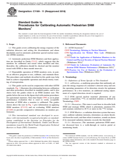 ASTM C1189-11(2018) - Standard Guide to Procedures for Calibrating Automatic Pedestrian SNM Monitors