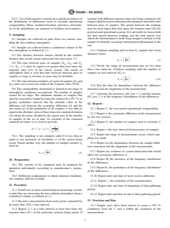 ASTM D4430-00(2023) is a standard published by ASTM International. Its full title is "Standard Practice for Determining the Operational Comparability of Meteorological Measurements". This standard covers: SIGNIFICANCE AND USE 5.1 This practice provides data needed for selection of instrument systems to measure meteorological quantities and to provide an estimate of the precision of measurements made by such systems. 5.2 This practice is based on the assumption that the repeated measurement of a meteorological quantity by a sensor system will vary randomly about the true value plus an unknowable systematic difference. Given infinite resolution, these measurements will have a Gaussian distribution about the systematic difference as defined by the Central Limit Theorem. If it is known or demonstrated that this assumption is invalid for a particular quantity, conclusions based on the characteristics of a normal distribution must be avoided. SCOPE 1.1 Sensor systems used for making meteorological measurements may be tested for laboratory accuracy in environmental chambers or wind tunnels, but natural exposure cannot be fully simulated. Atmospheric quantities are continuously variable in time and space; therefore, repeated measurements of the same quantities as required by Practice E177 to determine precision are not possible. This practice provides standard procedures for exposure, data sampling, and processing to be used with two measuring systems in determining their operational comparability (1,2).2 1.2 The procedures provided produce measurement samples that can be used for statistical analysis. Comparability is defined in terms of specified statistical parameters. Other statistical parameters may be computed by methods described in other ASTM standards or statistics handbooks (3). 1.3 Where the two measuring systems are identical, that is, same make, model, and manufacturer, the operational comparability is called functional precision. 1.4 Meteorological determinations frequently require simultaneous measurements to establish the spatial distribution of atmospheric quantities or periodically repeated measurement to determine the time distribution, or both. In some cases, a number of identical systems may be used, but in others a mixture of instrument systems may be employed. The procedures described herein are used to determine the variability of like or unlike systems for making the same measurement. 1.5 This standard does not purport to address the safety concerns, if any, associated with its use. It is the responsibility of the user of this standard to establish appropriate safety, health, and environmental practices and determine the applicability of regulatory limitations prior to use. (See 8.1 for more specific safety precautionary information.) 1.6 This international standard was developed in accordance with internationally recognized principles on standardization established in the Decision on Principles for the Development of International Standards, Guides and Recommendations issued by the World Trade Organization Technical Barriers to Trade (TBT) Committee.