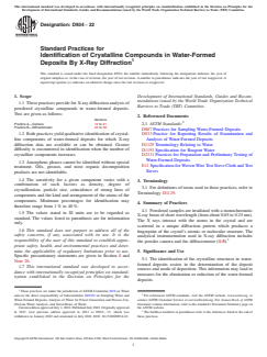 ASTM D934-22 - Standard Practices for Identification of Crystalline Compounds in Water-Formed Deposits By X-Ray Diffraction