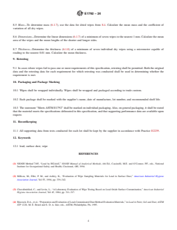 - Performance Testing: Details standardized methods to verify wipe performance, using laboratory procedures described in referenced ASTM practices and test methods.