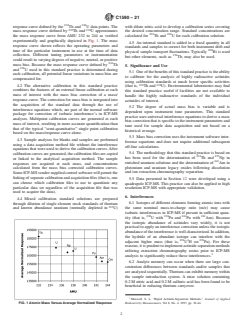1.2 The instrument response for a series of determinations of known concentration of 232Th and 238U defines the mass versus response relationship. For each standard concentration, the slope of the line defined by 232Th and 238U is used to derive linear calibration curves for each mass of interest using interference equations. The mass bias corrected calibration curves, although generated from interference equations, are specific to the instrument operating parameters and tuning in effect at the time of data acquisition. Because interference equations are part of the normal ICP-MS manufacturer's software package, this calibration methodology is widely applicable.