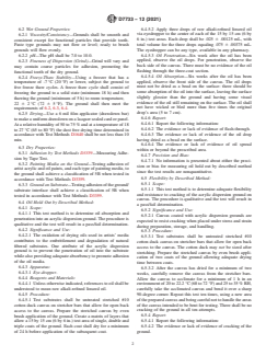 ABSTRACT This specification specifies test methods which measure minimum qualities for acrylic dispersion grounds. It indicates the conditions that affect the quality of acrylic dispersion grounds that are not covered in the specification, such as wet ground properties, dry properties, and storage. This specification also mentions several methods that are used to test some of these conditions, including adhesion, oil hold out, and flexibility. SCOPE 1.1 This standard specifies test methods which measure minimum qualities for acrylic dispersion grounds. 1.2 The values stated in SI units are to be regarded as the standard. The values given in parentheses are for information only. 1.3 This standard does not purport to address all of the safety concerns, if any, associated with its use. It is the responsibility of the user of this standard to establish appropriate safety, health, and environmental practices and determine the applicability of regulatory limitations prior to use. 1.4 This international standard was developed in accordance with internationally recognized principles on standardization established in the Decision on Principles for the Development of International Standards, Guides and Recommendations issued by the World Trade Organization Technical Barriers to Trade (TBT) Committee.
